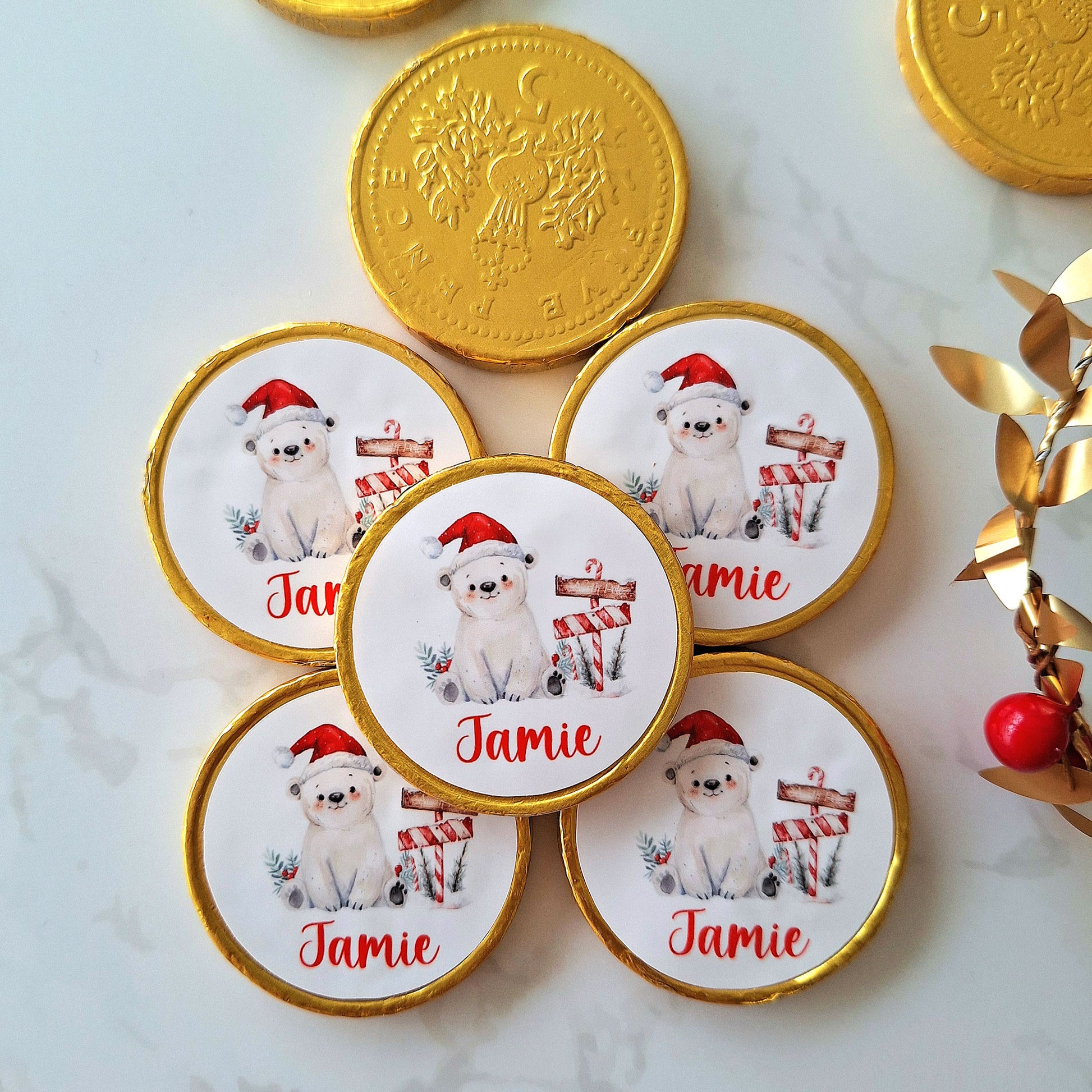 Our chocolate coins have cheerful Christmas designs featuring Santa Claus, Elf, Snowman and more! These personalised chocolate coins make the perfect Christmas stocking fillers for children, as well as delightful additions to advent calendars, Christmas Eve boxes, Christmas party favour bags or as a sweet treat for Christmas Day.